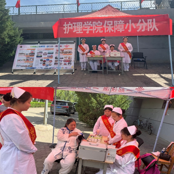 劳育固本,践行医疗志愿精神,彰显服务担当。校运会期间,学院组建“医疗保障小分队”,将劳动教育融入实践服务。护理学子化作“校园守护者”,携带血压仪、应急药箱、包扎用品驻守赛场,为运动员量血压、处理擦伤扭伤、科普运动防护知识,用“专业+耐心”构筑安全防线。从“课堂学习者”到“一线服务者”,将护理技能转化为“办实事、解难题”的行动力,诠释“奉献、友爱、互助”的志愿精神。